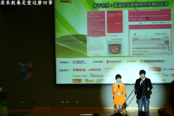 頒獎前,猶如大海撈針,很開心遇見網路世界裡認識的朋友,是懷有身孕的瓶子與她的先生,他們連袂出席,孩子給阿公阿嬤帶。我的給外子帶。