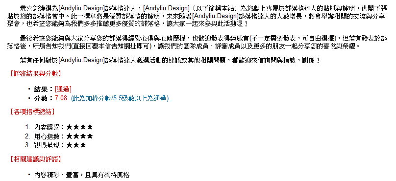 教養的範疇很廣泛,涉及的層面非常多元,以一個自許為全職家庭主婦的角色,是無法道盡其中猶如蜘蛛網般錯縱複雜,卻又相輔相成的脈絡與關係。如同得知獲選這一刻,我該如何面對與整理當下的心情,又該如何向親愛的家人啟齒,從內容簡單卻情感豐富的筆觸中,我與孩子在美食關係上的互動贏得部落格達人的賞識,這件事,對於懵懂的孩子唯一存在的意義是,媽媽,你又多一張貼紙。