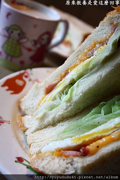 翌日和第三日,利用優格土司分別夾著培根,荷包蛋,和美生菜,鮪魚洋蔥沙拉,荷包蛋,和美生菜,做了培根蛋三明治和鮪魚蛋三明治當早餐。