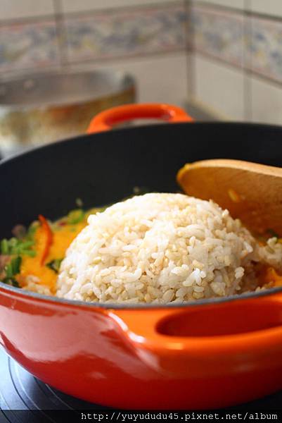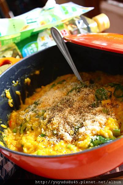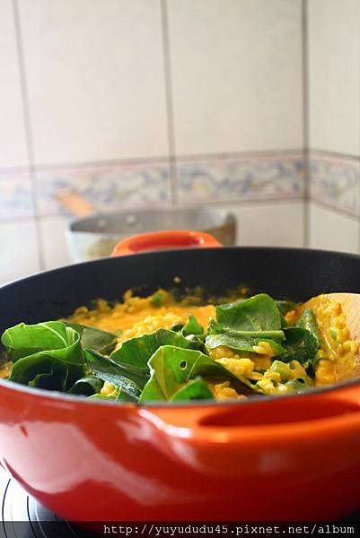 周末午間餐食,南瓜甘藍燉飯,便是利用泰山這款最新推出的輕健美油烹煮出來的懶人料理。雖號稱是懶人料理,卻也因為使用的食材新鮮紮實,當端上餐桌趁鐵鑄的餘熱猶存的當下,嚐在口中的味蕾,猶如經時間燉煮般,不僅色到,香到,味到,更是營養滿分。
