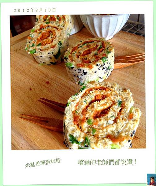 因此,為要感謝六位老師辛勤的指導與帶領,送孩子進民俗公園上課後烤焙了一條米麩香蔥蛋糕捲,不僅傳達謝意,也希望師生雙方皆能留下美好回憶,更期待未來的再次相遇。