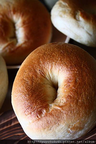 配方採自"風味麵包教科書"裡的"巧克力餅乾貝果"。巧克力的黑和原味貝果的白彼此之間顏色醒目的對比,與使用的芝士夾心餅乾製作的成果相較,顯得平凡,說它是原味貝果,無庸置疑。但,就是喜歡貝果這個樣子,如孩子本質裡的那分純真。說它是一般的貝果,也好,說它"果"不可貌相,也好,曾幾何時,自己還能保留多少孩子的簡單,這還得靠愈長愈大的孩子共同努力。